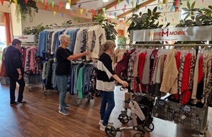 Auch in diesem Jahr besuchte uns, pünktlich zum Frühlinganfang, das Mode Mobil mit seiner neuen Frühjahr-/ Sommerkollektion. Wir freuten uns über fröhlich bunte Farben, die direkt gute Laune verbreiteten. BW verweilten und bestaunten die Kleidung, probierten Verschiedenes an und präsentierten die Ware wie Models.