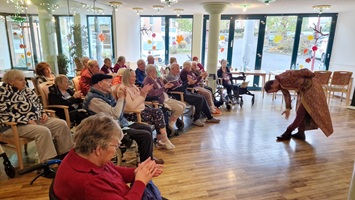 Die Bewohner verfolgten gespannt das weitere Geschehen und freuten sich als die Puppen im Anschluss so nah kamen, dass sie ihnen die Hand schütteln konnten.