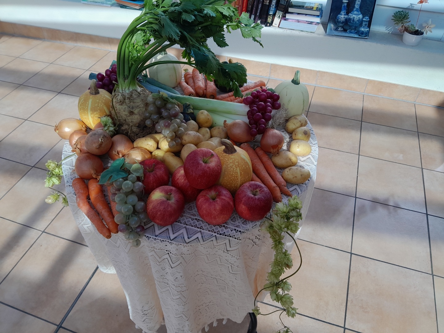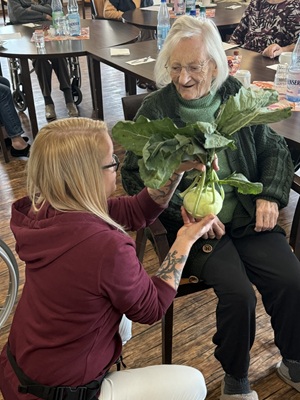 Pfarrer Gerber gestaltete in Weißenthurm eine Andacht, in der die Bedeutung von Dankbarkeit und Gemeinschaft im Mittelpunkt stand. Viele Bewohnerinnen und Bewohner erinnerten sich an frühere Erntezeiten an die Arbeit auf Feldern und in Gärten. Sie erzählten kleine Geschichten aus vergangenen Tagen. Das Betreuungsteam hatte ein abwechslungsreiches Programm vorbereitet: Eine kleine Erntedank-Geschichte stimmte auf den Herbst ein, und beim Mitsprechgedicht machten viele begeistert mit – es wurde gelacht, geklatscht und rhythmisch gesprochen. Beim anschließenden Erntedank-Quiz konnten die Teilnehmenden ihr Wissen rund um Früchte, Feldarbeit und alte Bräuche testen.