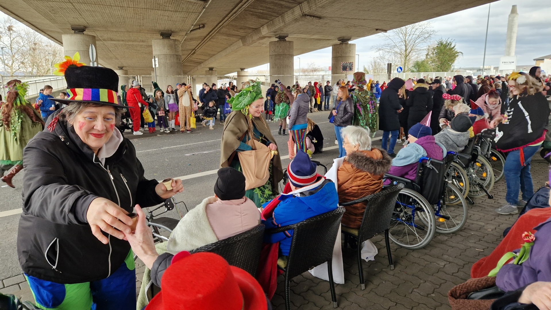 Die Höhepunkte des Umzugs waren für viele die Kamelle, die von den Wagen geworfen wurden. Mit leuchtenden Augen und voller Begeisterung fingen die Senioren die bunten Bonbons und Süßigkeiten.