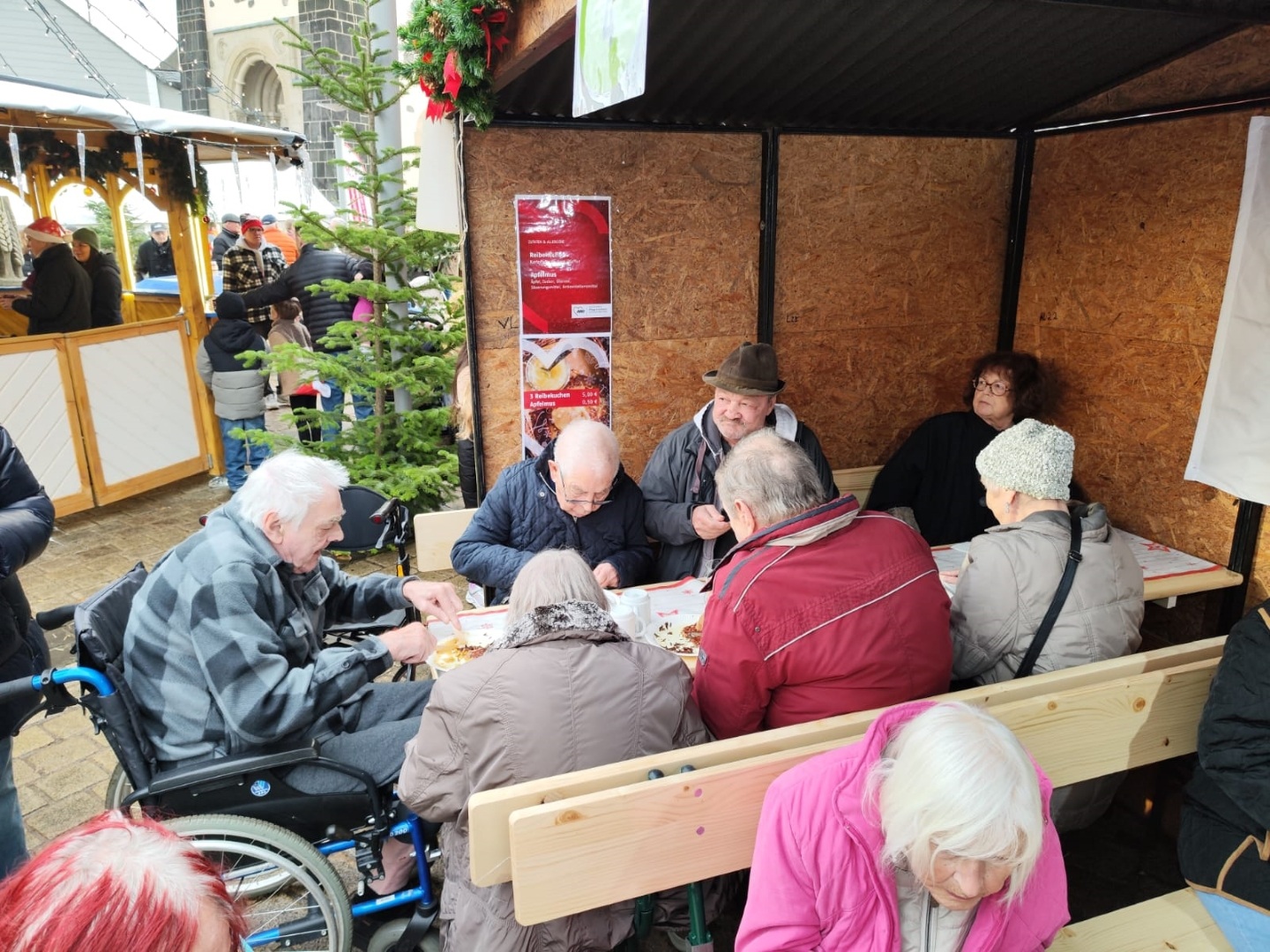 Am eigenen Stand konnten sich unsere Bewohner nach dem Rundgang stärken und natürlich die selbst gebackenen Reibekuchen probieren. Die Freude darüber, gemeinsam außerhalb des Hauses unterwegs zu sein und bekannte Gesichter am Stand zu treffen, war deutlich zu spüren.