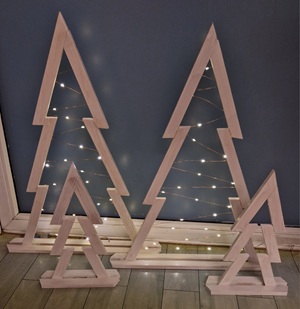 Zum Abschluss des Projekts wurden die fertigen Holztannenbäume im Eingangsbereich arrangiert. Dort heißen sie nun Besuchende und Bewohnerinnen und Bewohner mit ihrer natürlichen, selbstgemachten Weihnachtsoptik willkommen und spiegeln den Einsatz und die Freude wider, die in dieses Projekt eingeflossen sind.